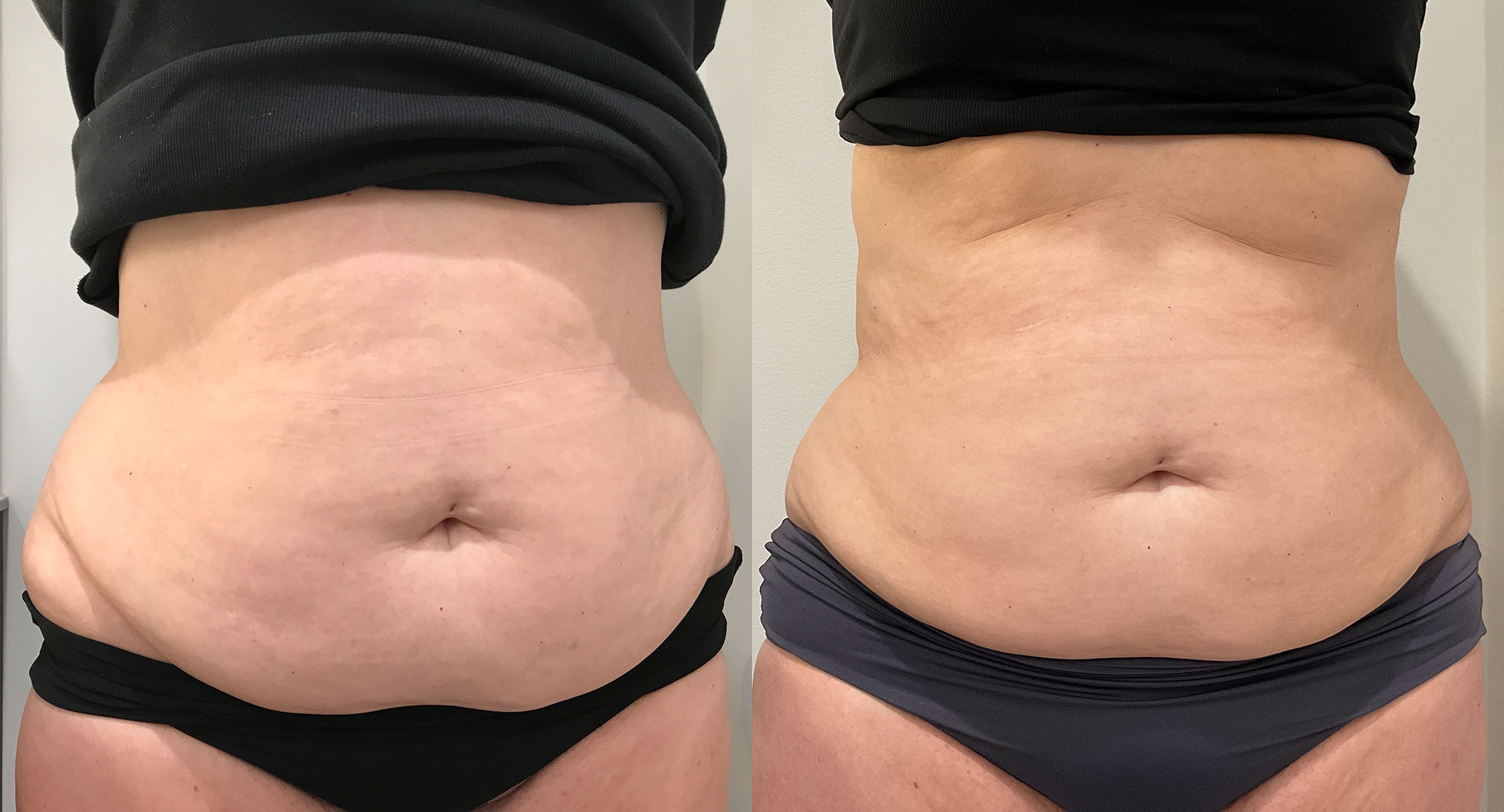 This woman wanted help reducing the stubborn fat in her midsection. These photos are six weeks after her first CoolSculpting Elite treatment to the abdomen, and right before her second treatment. We can't wait to see the final result!