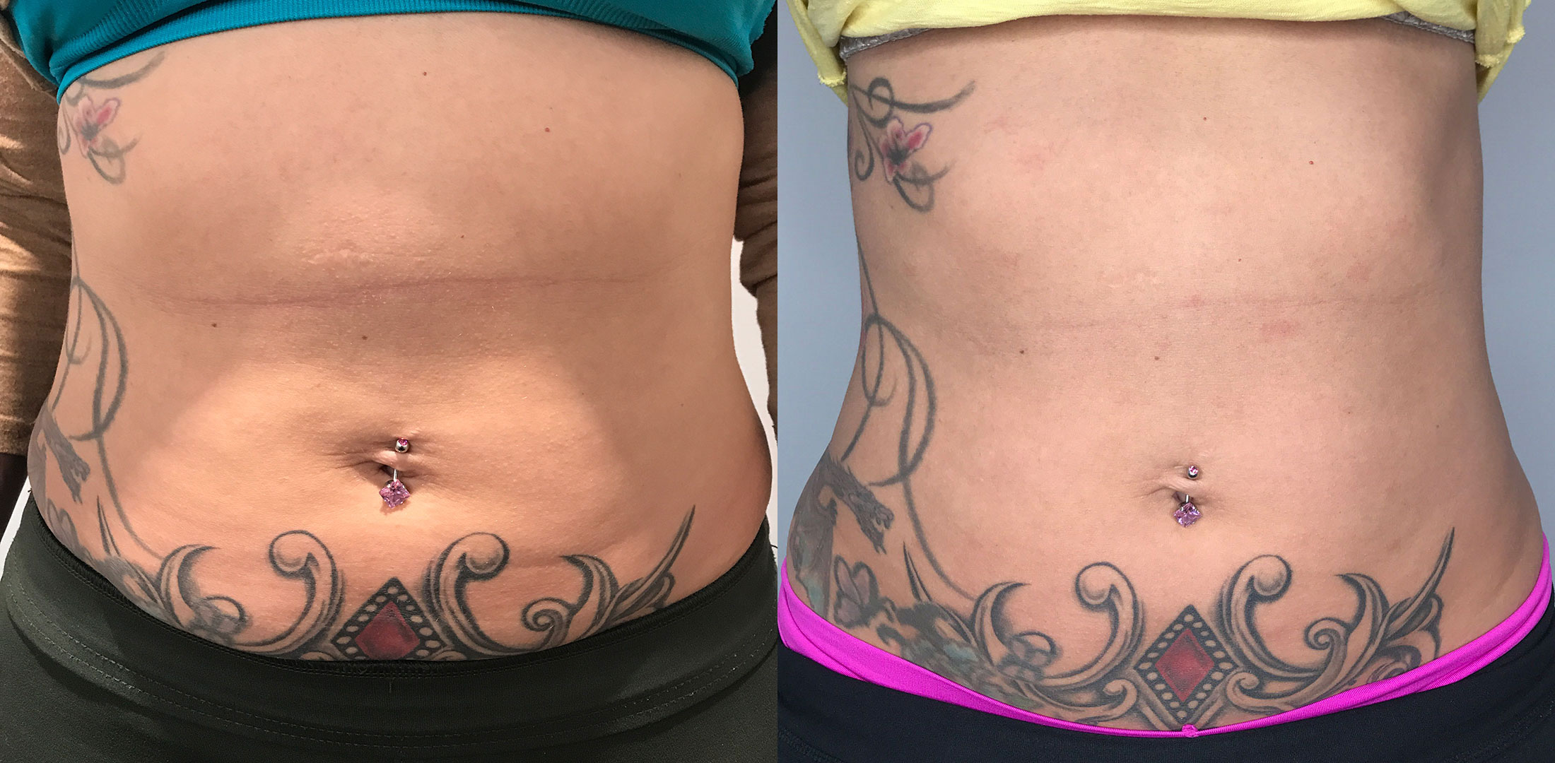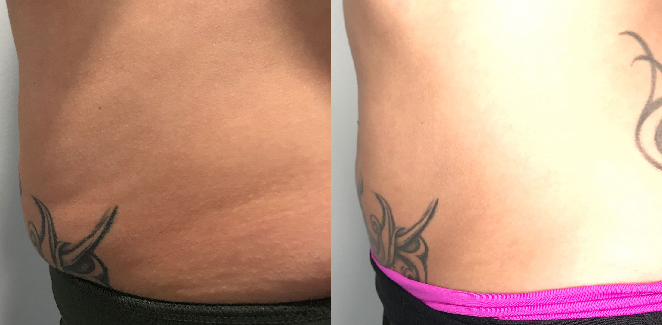 This 38-year-old female had stubborn pockets of adipose tissue on her lower abdomen. We used Kybella to permanently destroy the tissue and help slim the lower abdomen.