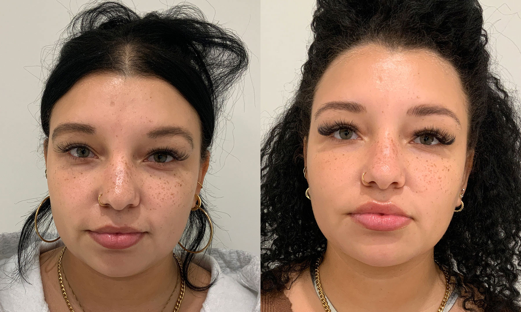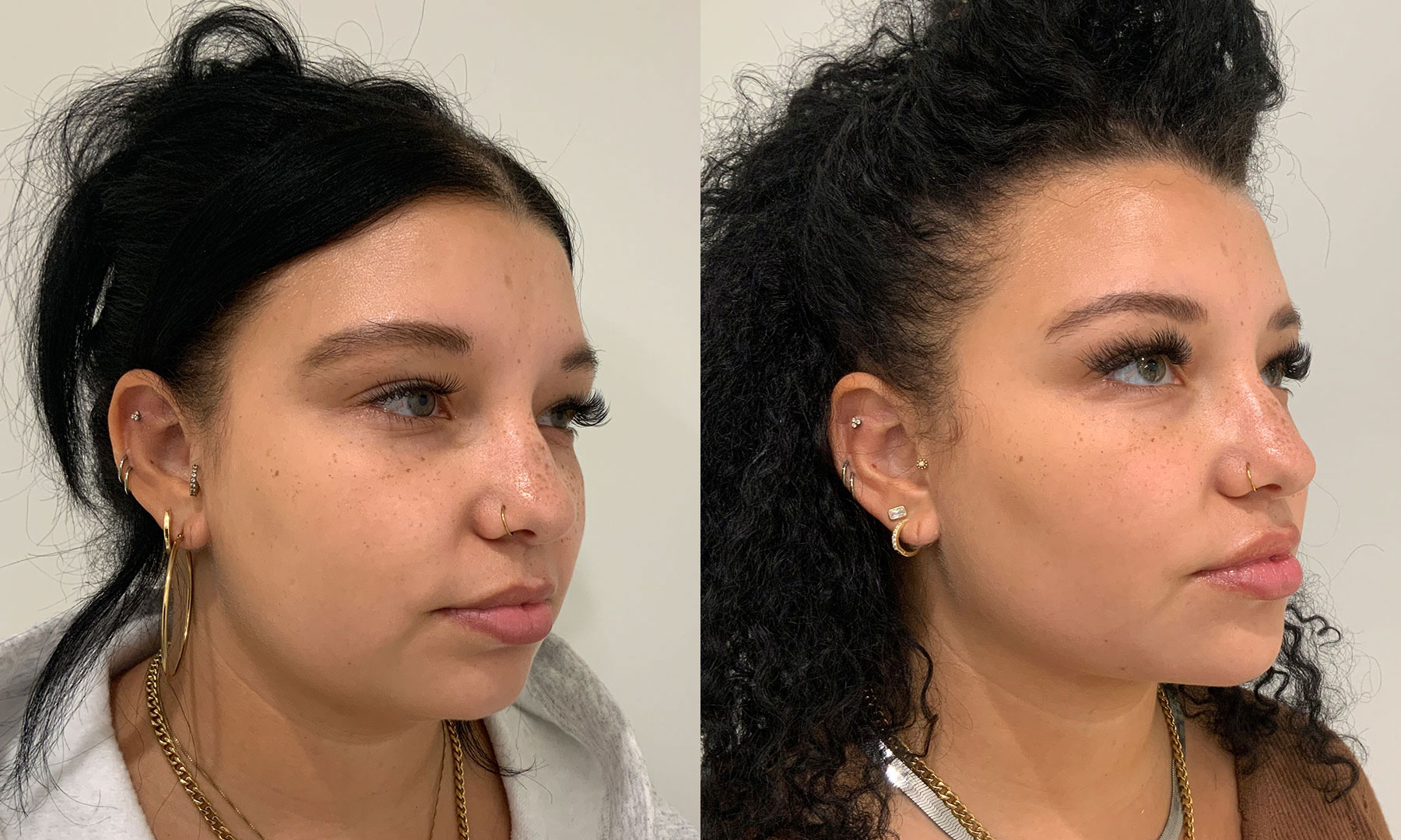 To create this gorgeous sculpted look, we first used Kybella to help reduce submental fat (commonly known as the "double chin") to help chisel out the look of the jawline. This cutie also received various HA fillers in the cheeks, lips, jawline, and chin. The result is beautiful, natural, and defined and we couldn't be happier with the outcome!