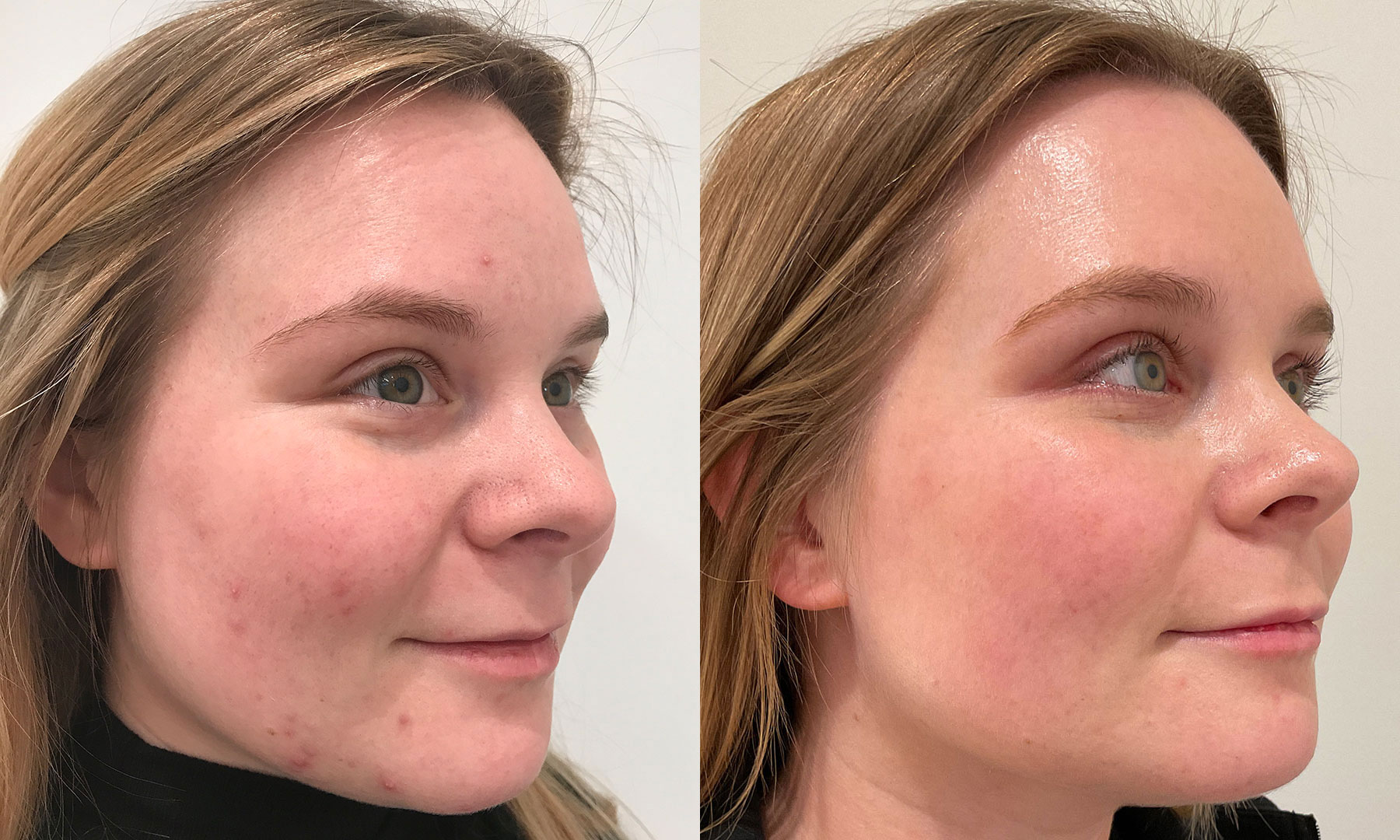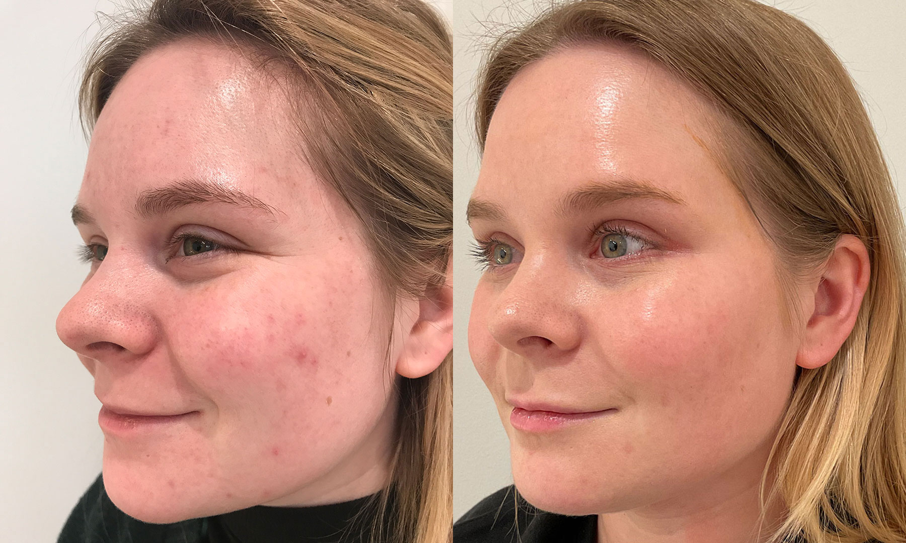 Acne is such a common skin condition but there are so many triggers and types of acne. This beauty battled with acne and is considered more a more sensitive skin type. She had tried most over-the-counter but tended to go for more "natural" products. We have adjusted her regimen to be more calming and healing with our Radiance brand skincare, only available at Radiance Skin Therapy in Madison, WI. This result is after one peel & eight months of pharmaceutical grade products. You'll notice a wonderful reduction in redness and acne, improved texture, pores and overall skin radiance.